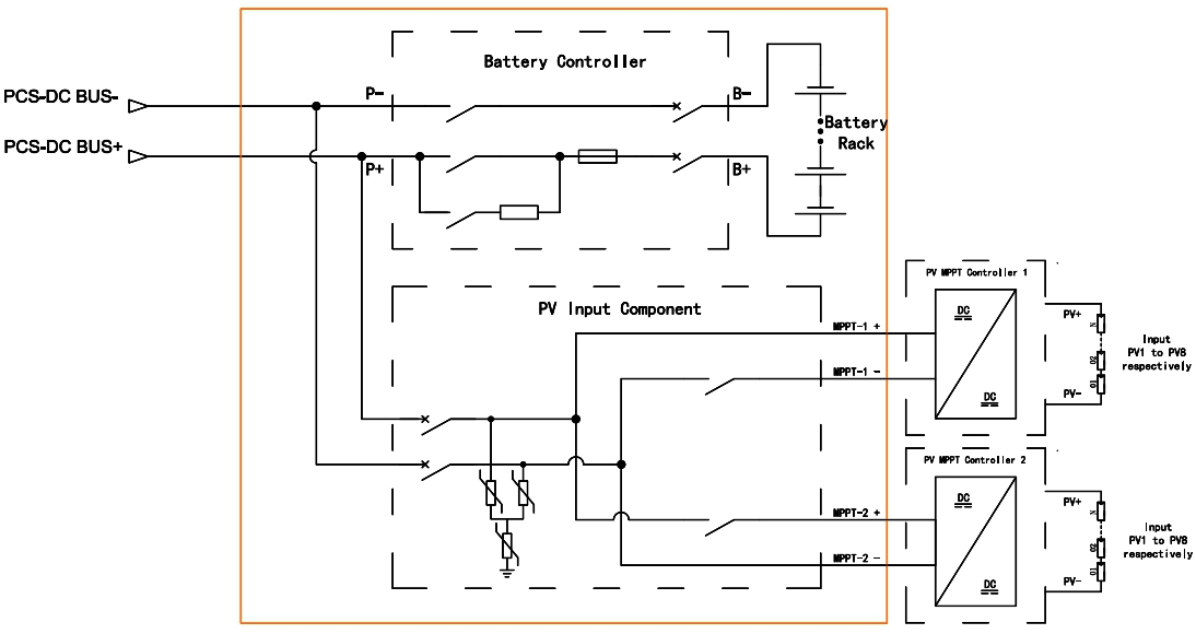 4. سیستم ذخیره انرژی باتری دارای یک رابط ورودی DC یکپارچه و جعبه کنترل باتری برای کنترل خودکار MPPT فتوولتائیک برای محافظت از شارژ باتری است.