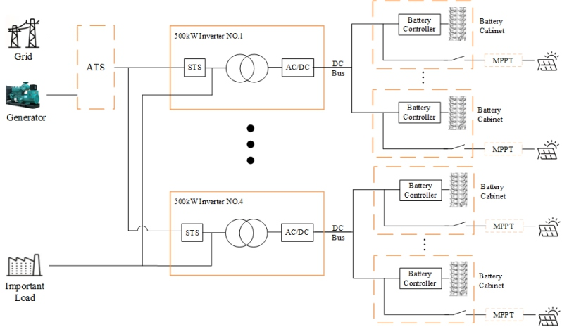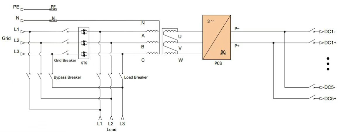 1. بارهای بیش از 500 کیلو وات، توصیه می شود از یک اینورتر ذخیره انرژی تک واحدی با ظرفیت 500 کیلووات استفاده کنید، که قادر به پشتیبانی تا چهار مجموعه از اتصالات موازی، دستیابی به توان خروجی 2 مگاوات است.